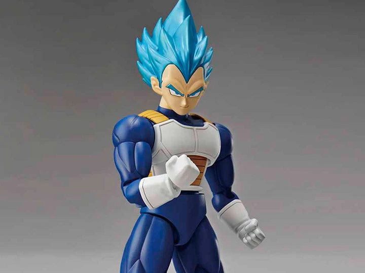 Vegeta with the power of a Super Saiyan God Super Saiyan! Goku’s most powerful rival and ally appears in the Figure-Rise Standard line with iconic blue hair that is molded via metallic gloss injection.