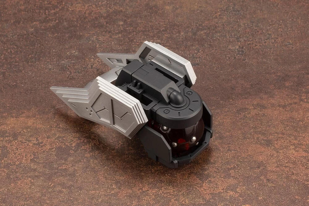 The cockpit hatch on the head can open and close, and holds the included pilot figure. The headgear allows for both forward and back movement as well as unobstructed left and right neck movement even when it’s not deployed. The Zoid Core inside the chest is removable while the back features 5mm hardpoints by default. The base of the Double Barreled Multi-Dischargers can be raised and the guns can be deployed on either side. They can also move up and down. A large selection of newly created decals for emblems and caution marks are included, so users can fine-tune the look of their Zoid!