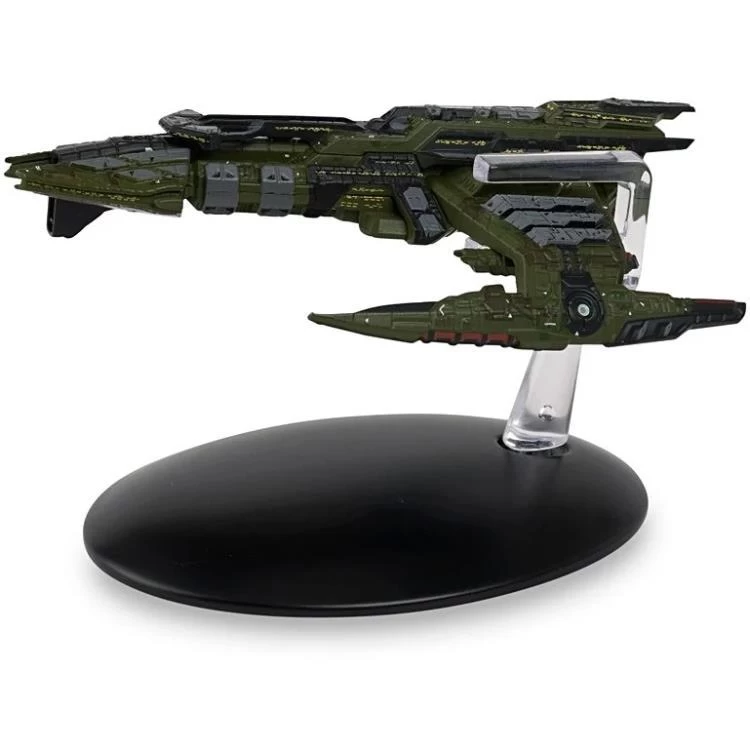 This Mogh-class Klingon Battlecruiser model has been painstakingly recreated in die-cast with extraordinary attention to detail bring the playable Klingon vessel to your home. The Mogh’s aggressive profile takes design cues from recent Klingon ships such as the Bortasqu’ class, with weapon hardpoints clearly visible on its hull, most notably the large weapon point in the ship’s centre.